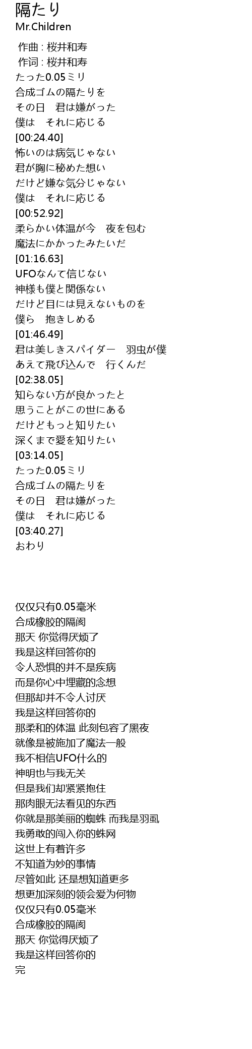 | [02:19.90] | 君は美しきスパイダー 羽虫が僕 |