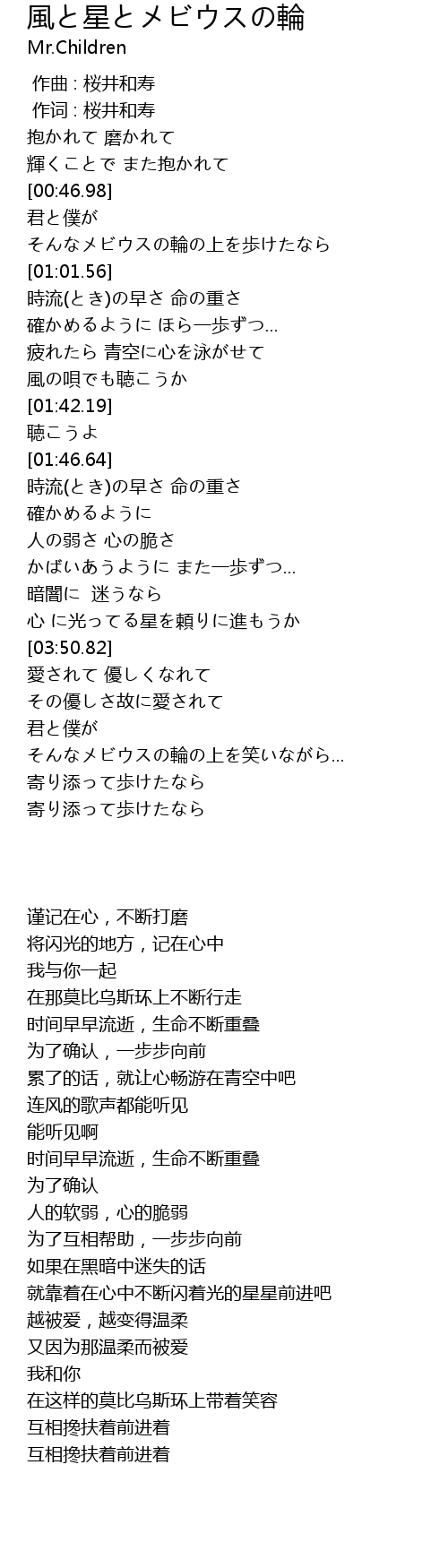 | [00:51.21] | そんなメビウスの輪の上を歩けたなら |