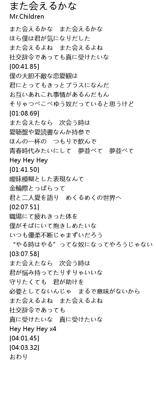 | [00:18.70] | また会えるかな また会えるかな |