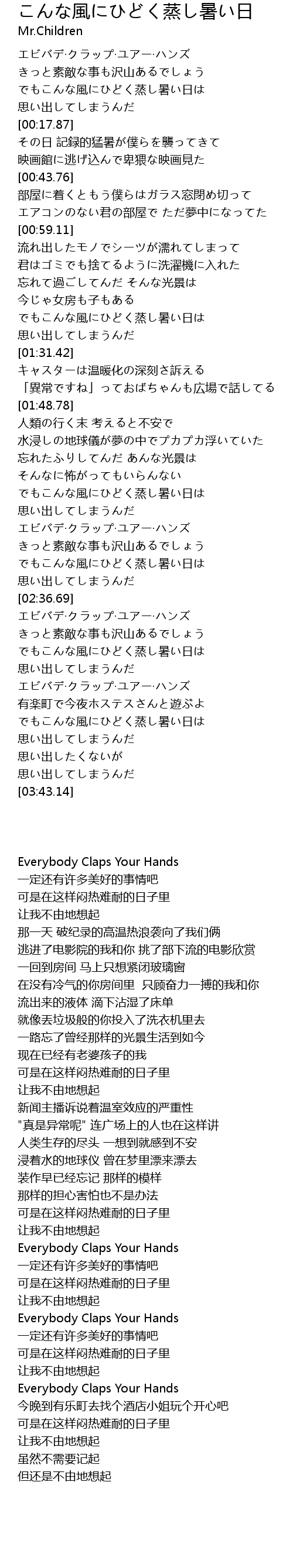 | [03:23.55] | エビバデ·クラップ·ユアー·ハンズ |
