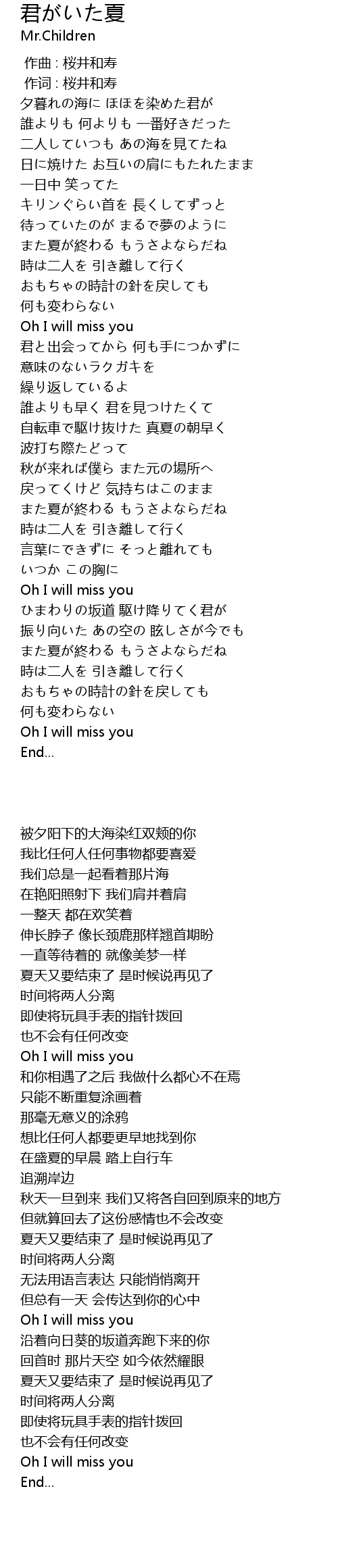 | [05:01.14] | Oh I will miss you |