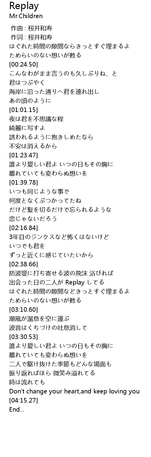 | [00:01.00] | 作词 : 桜井和寿 |