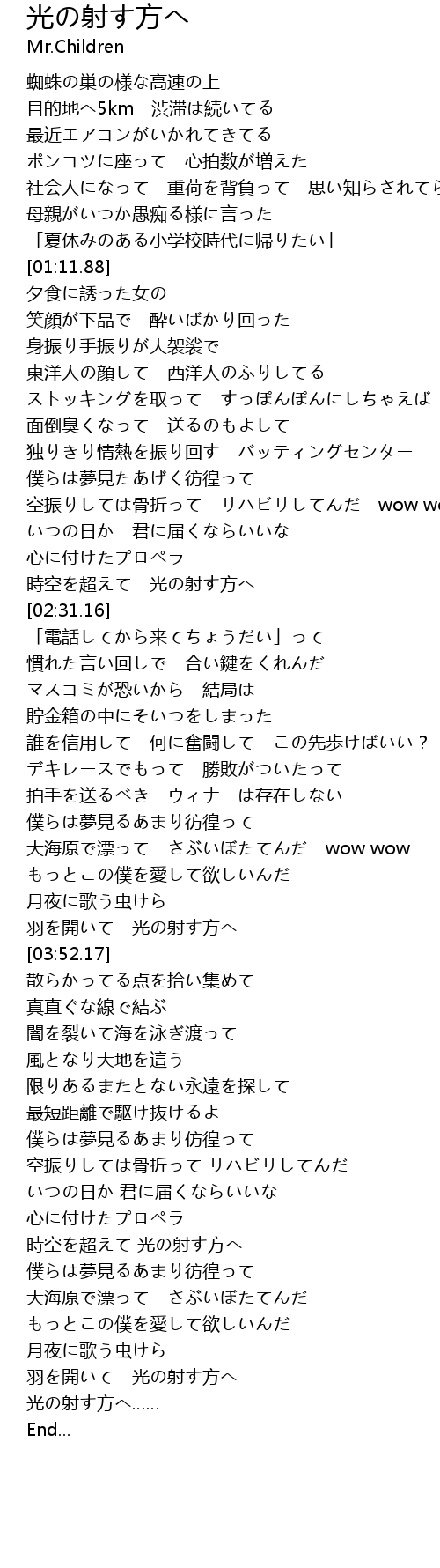 | [03:43.74] | 羽を開いて 光の射す方へ |