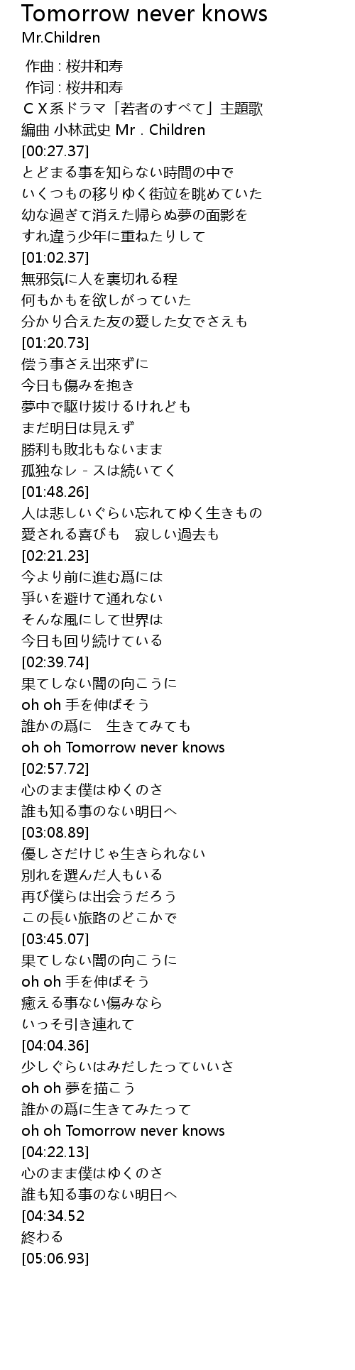 | [02:53.33] | oh oh Tomorrow never knows |