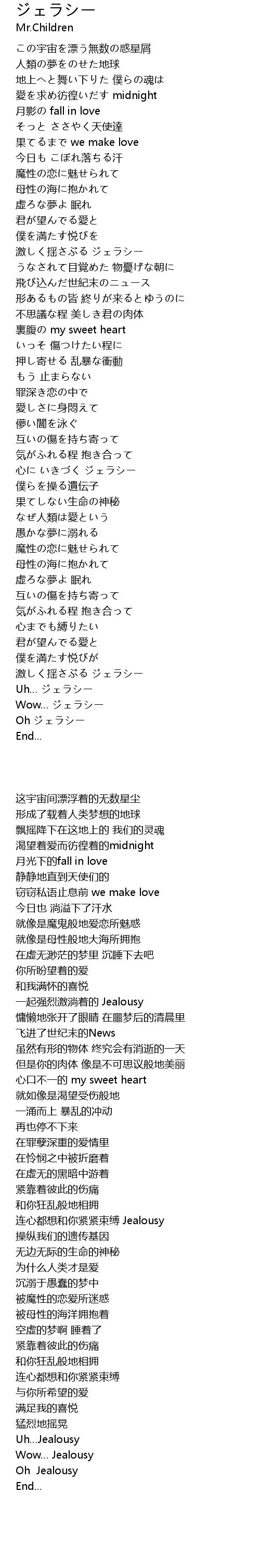| Song | ジェラシー |