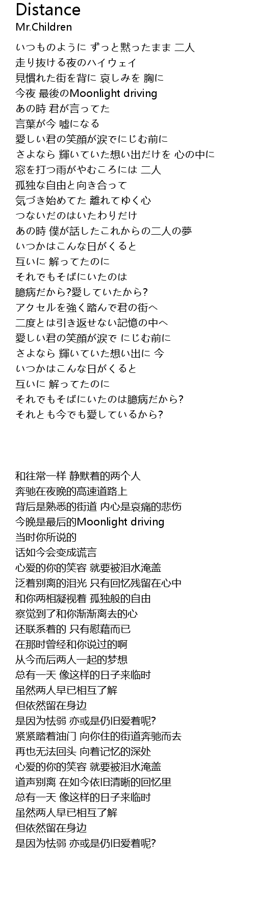 | [00:58.98] | 今夜 最後のMoonlight driving |