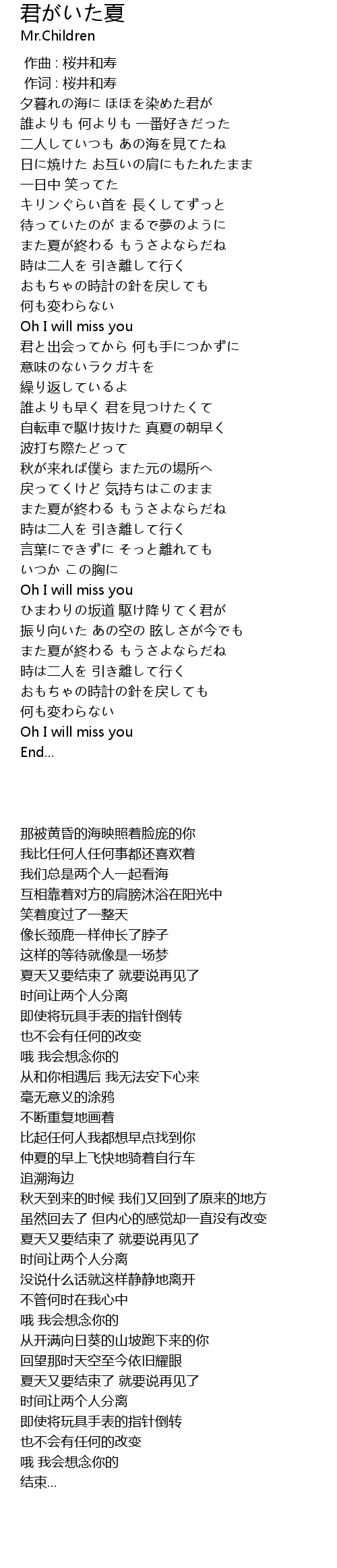 | [05:01.14] | Oh I will miss you |