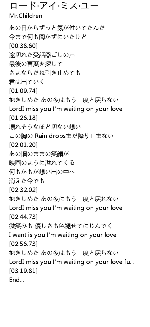 | [02:40.17] | LordI miss you I'm waiting on your love |