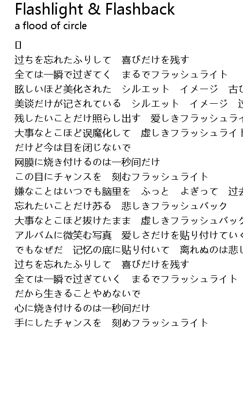 | 全ては一瞬で过ぎてく まるでフラッシュライト | |