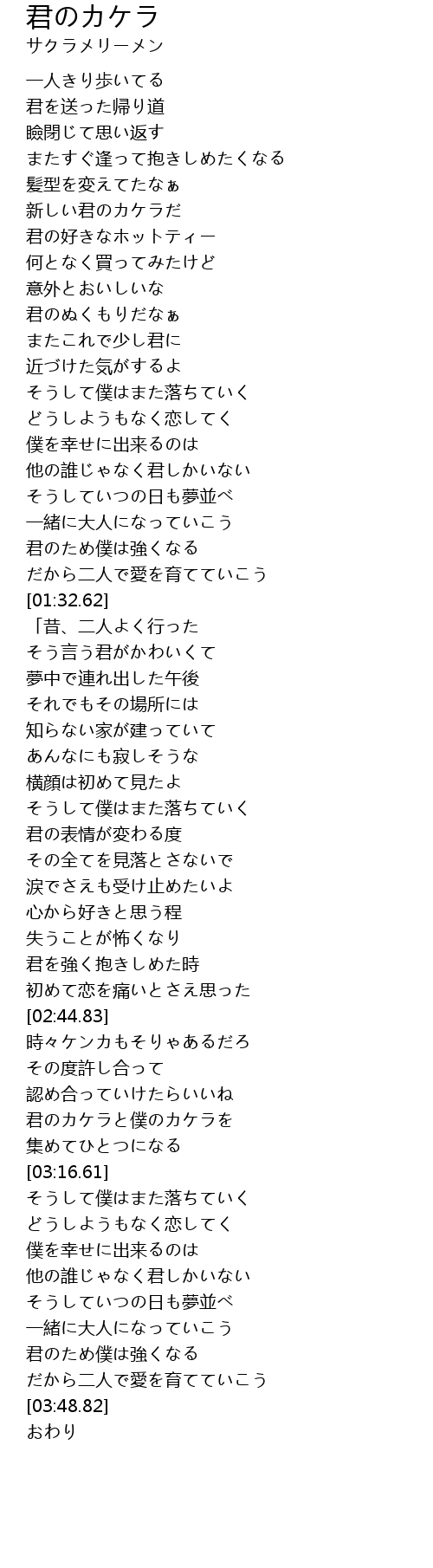 [03:08.36] 君のカケラと僕のカケラを