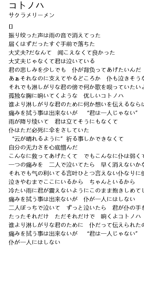 | 孤独な胸に响いてくような 优しいコトノハ | |