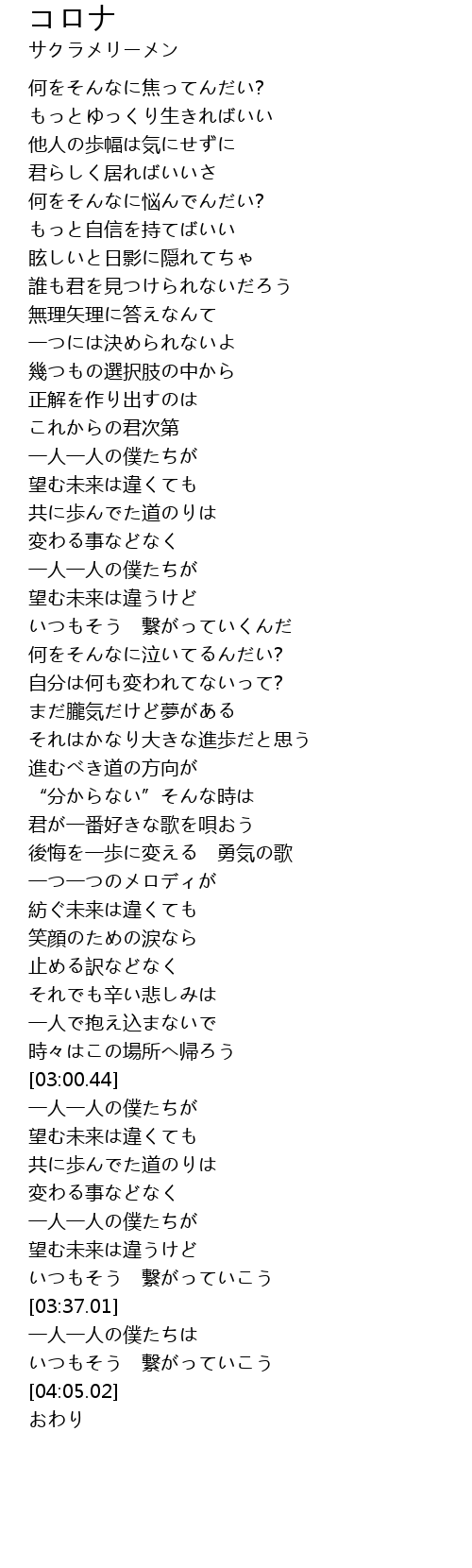 | Song | コロナ |