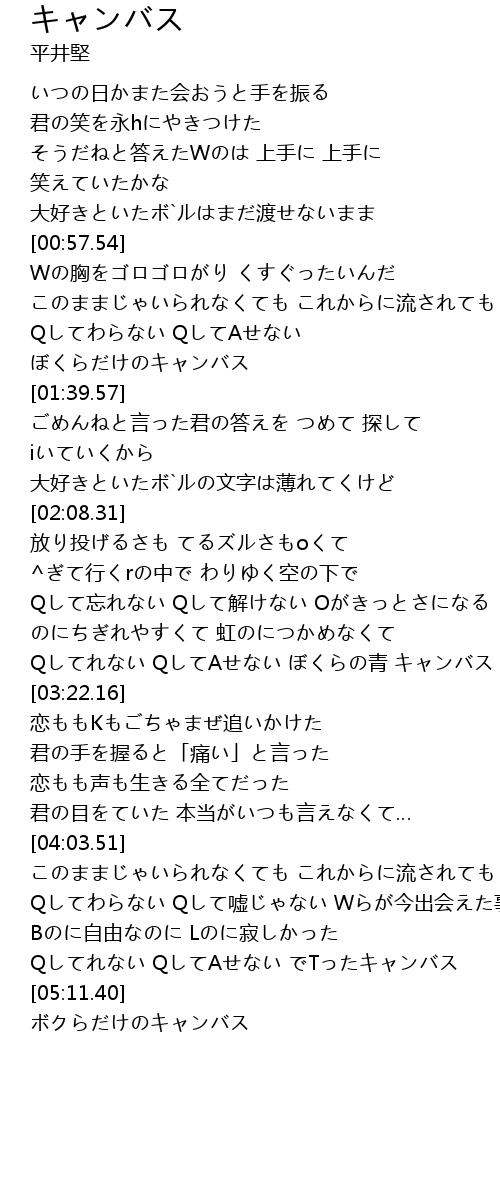 | [03:05.87] | Qしてれない QしてAせない ぼくらの青 キャンバス |
