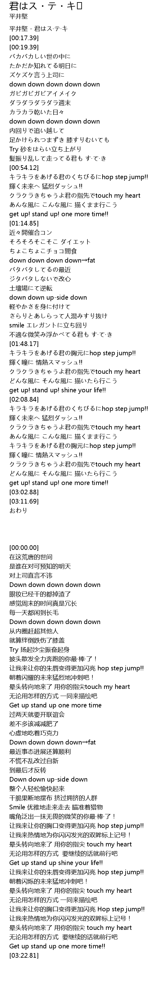 | [00:00.00] | 平井堅 - 君はス·テ·キ |