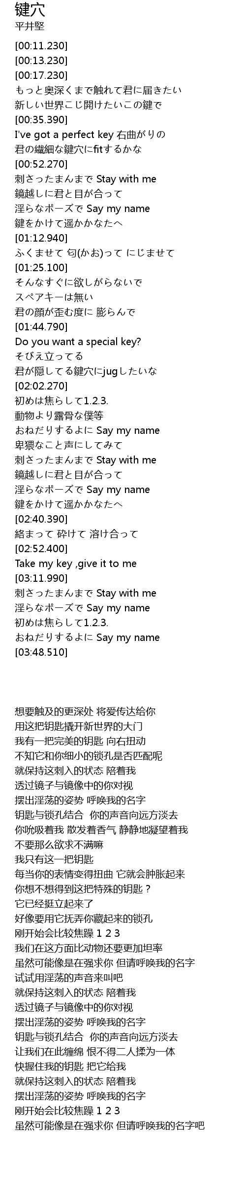 | [01:55.090] | 君が隠してる鍵穴にjugしたいな |