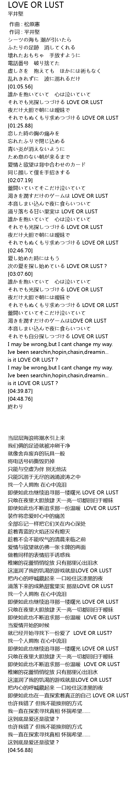 | [03:56.05] | qiú LOVE OR LUST |