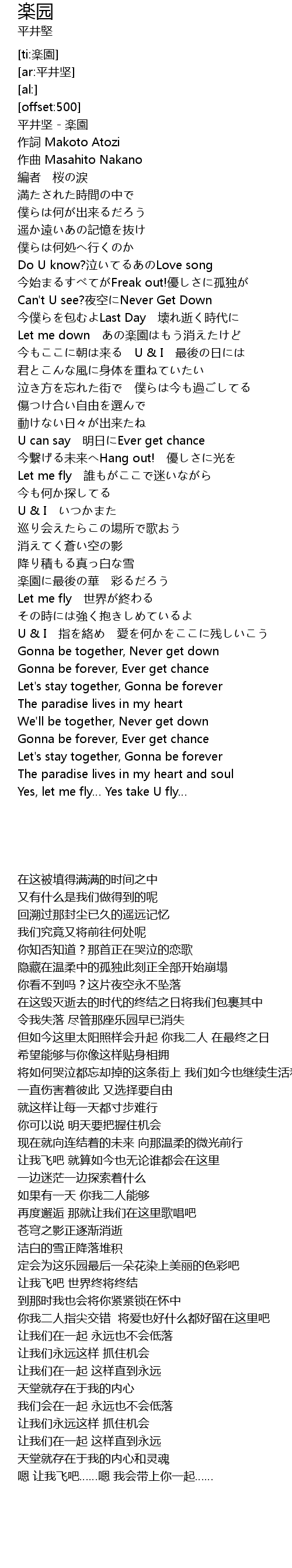 | [01:19] | Let me down あの楽園はもう消えたけど |