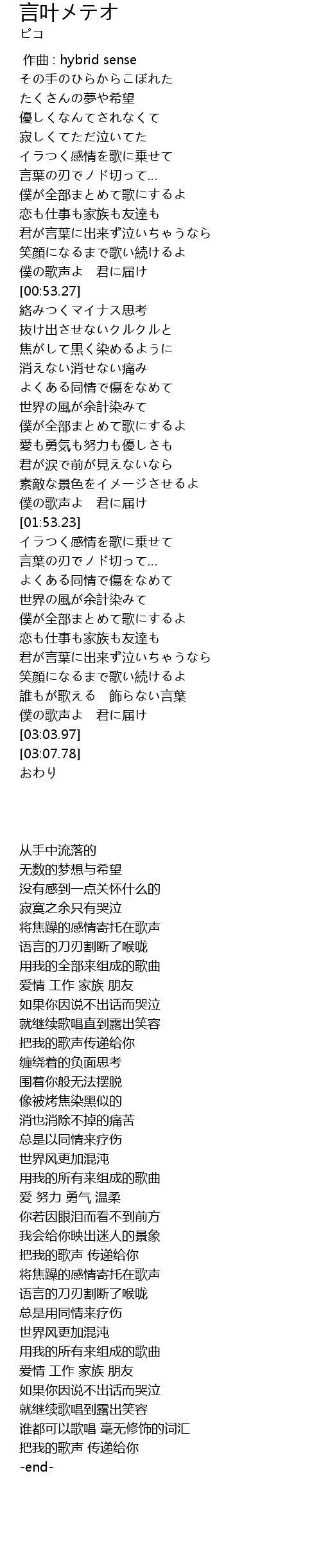 | [02:53.28] | 僕の歌声よ 君に届け |