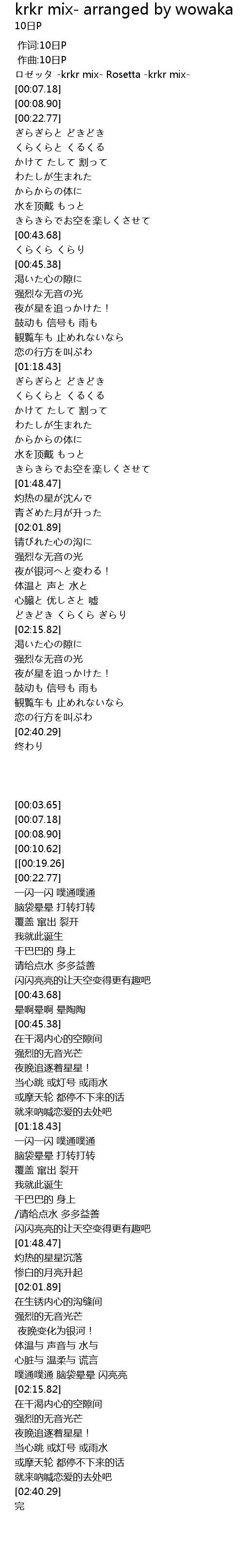 | [00:03.65] | ロゼッタ -krkr mix- Rosetta -krkr mix- |