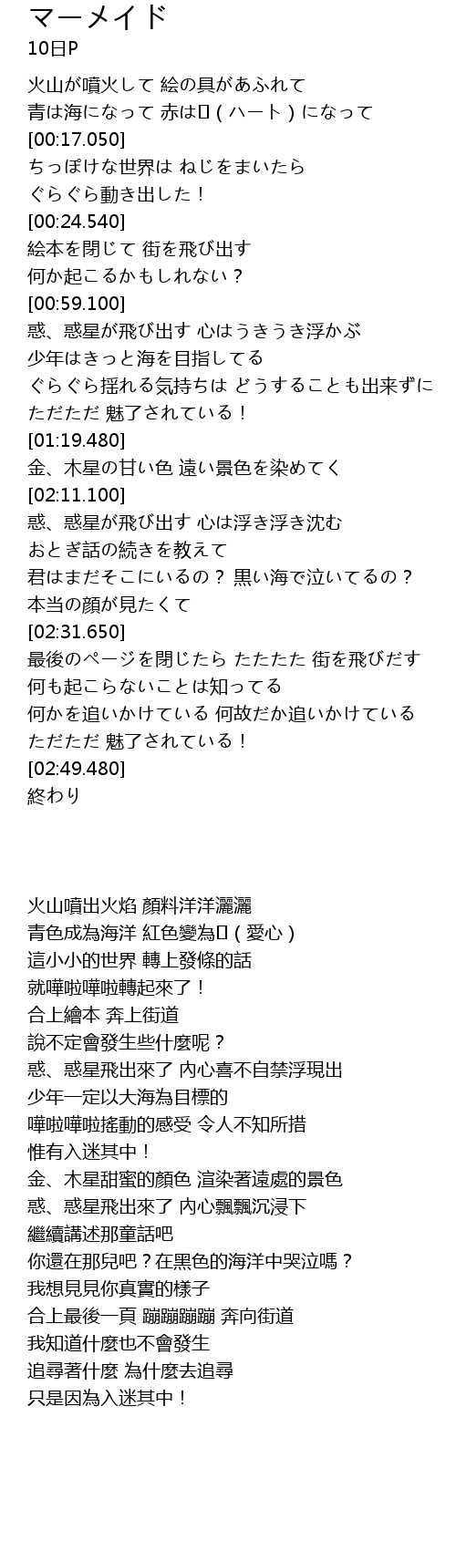| [00:08.960] | 火山が噴火して 絵の具があふれて |