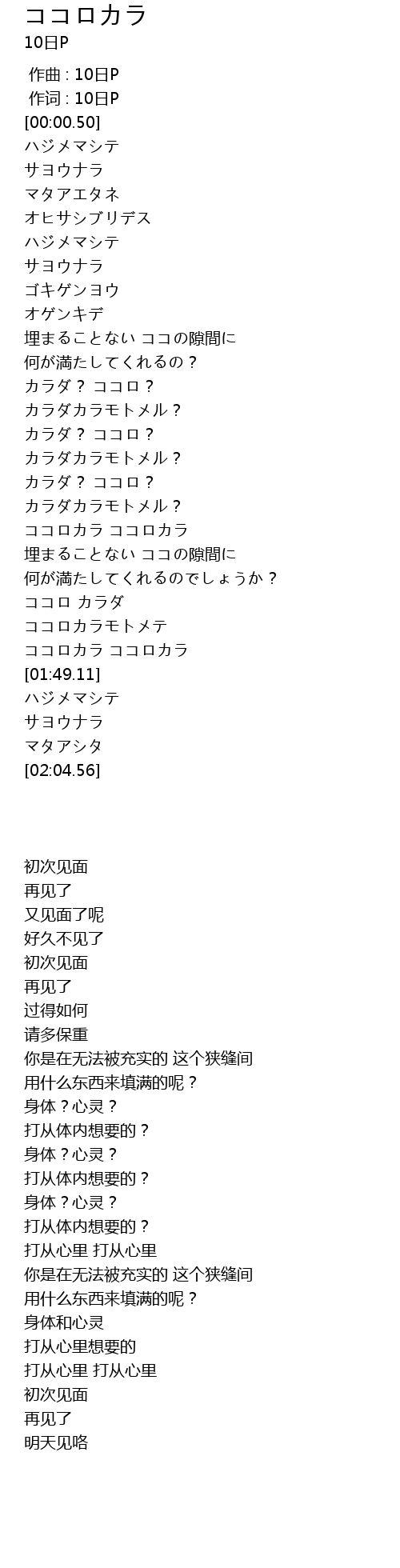 作词 : 10日P |