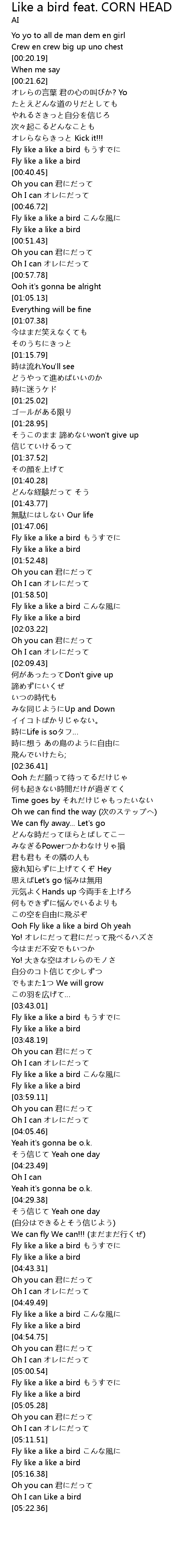 | [03:21.48] | Ooh Fly like a like a bird Oh yeah |