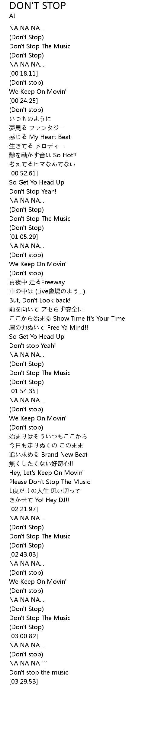 | [02:13.31] | Hey, Let's Keep On Movin' |