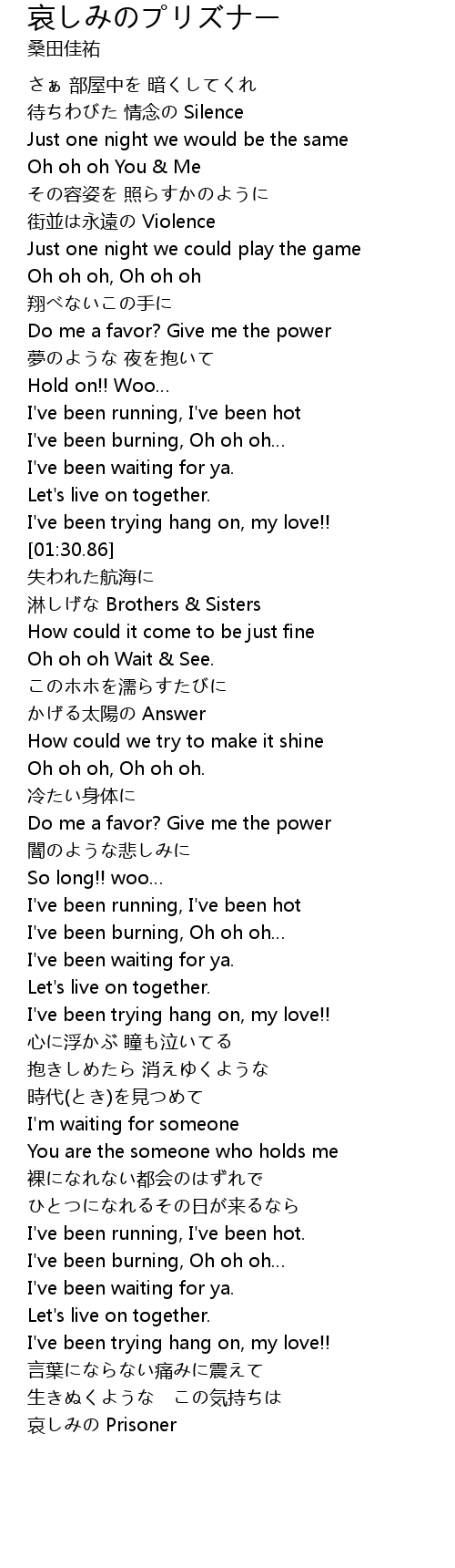 | [01:48.96] | 淋しげな Brothers & Sisters |