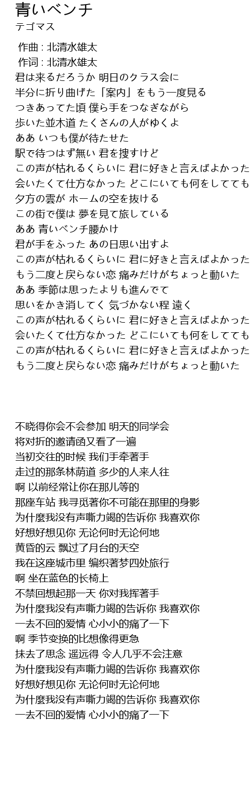 | [02:13.43] | ああ 青いベンチ腰かけ |