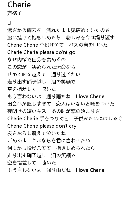 | Cherie Cherie 手をつなぐと 子供みたいにはしゃぐ君が | |