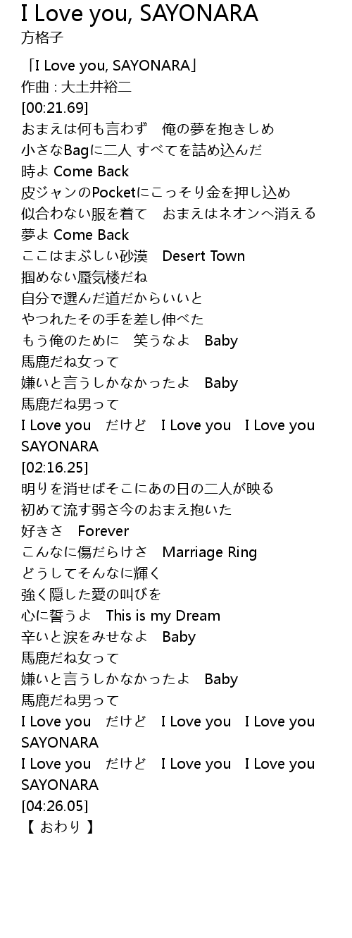 | [00:01.69] | 「I Love you, SAYONARA」 |