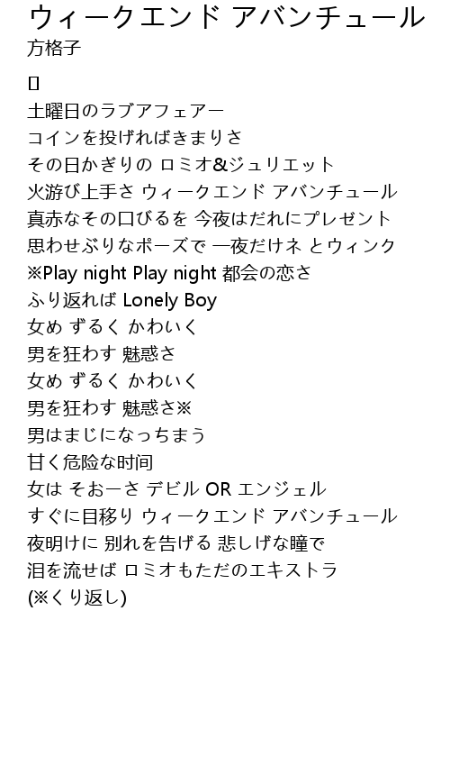 | すぐに目移り ウィークエンド アバンチュール | |