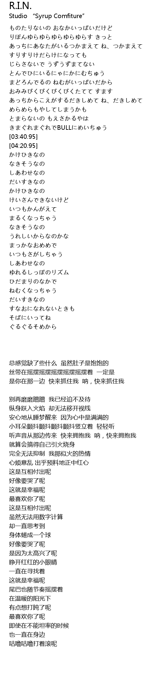 | [01:48.39] | ものたりないの おなかいっばいだけど |
