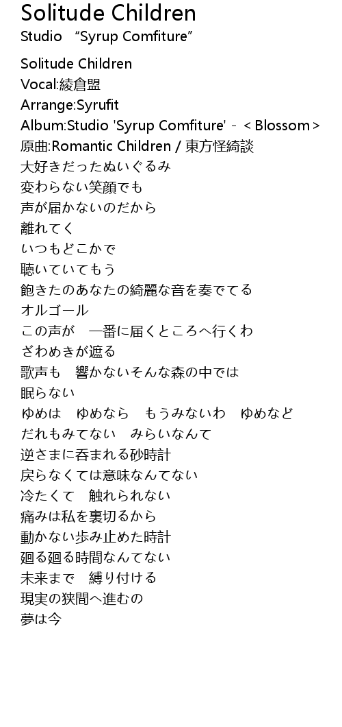 | [00:48.00] | 原曲:Romantic Children / 東方怪綺談 |