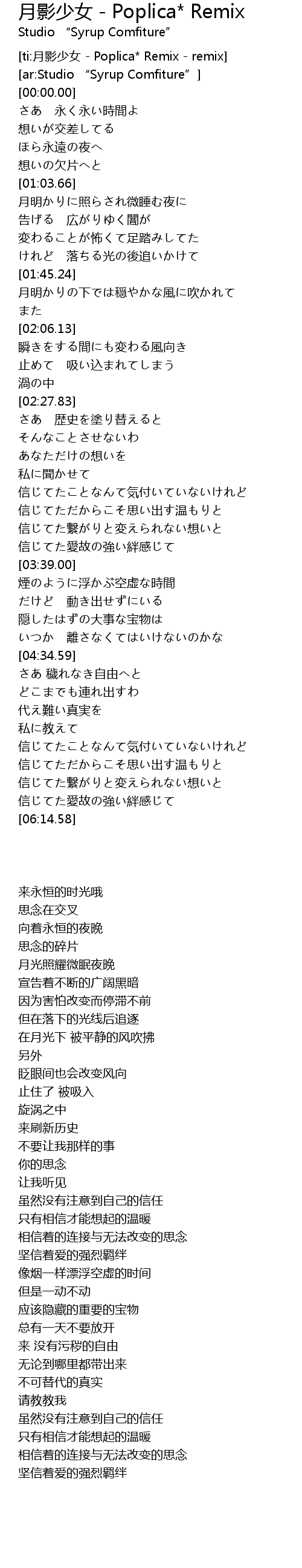 | [ti:月影少女 - Poplica* Remix - remix] | |