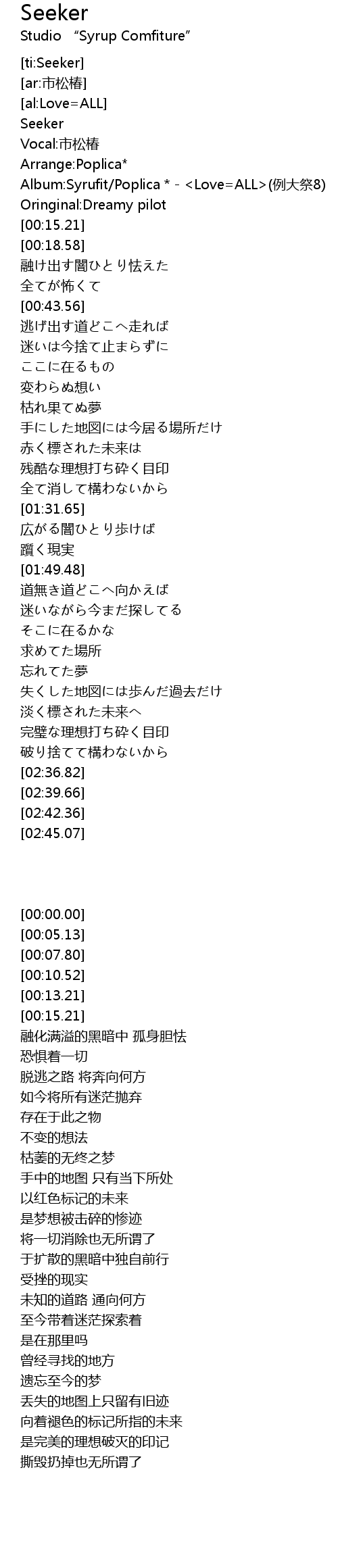 | [00:10.52] | Album:Syrufit/Poplica*- <Love=ALL>(例大祭8) |