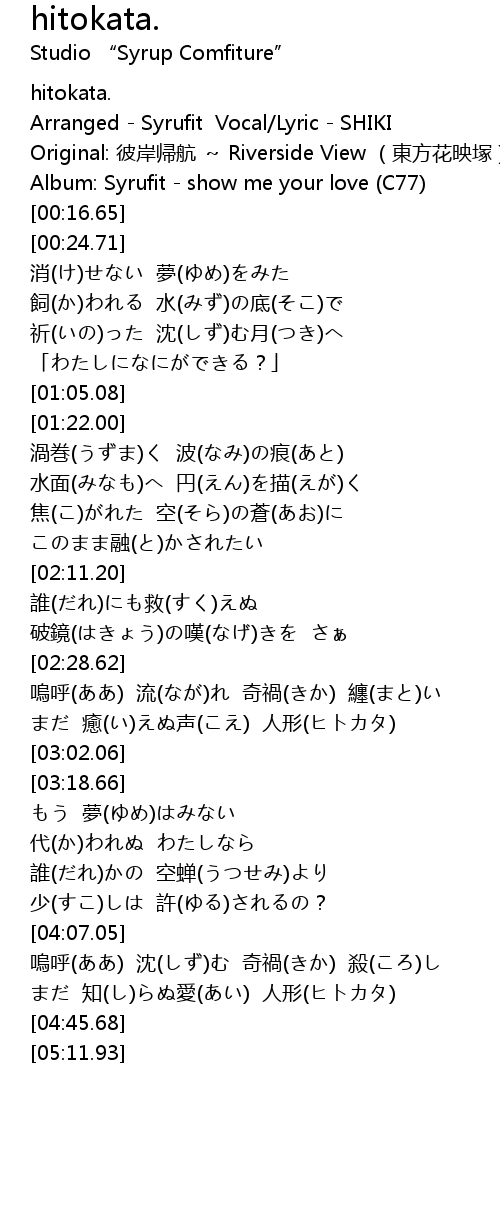 | [00:00.49] | hitokata. |