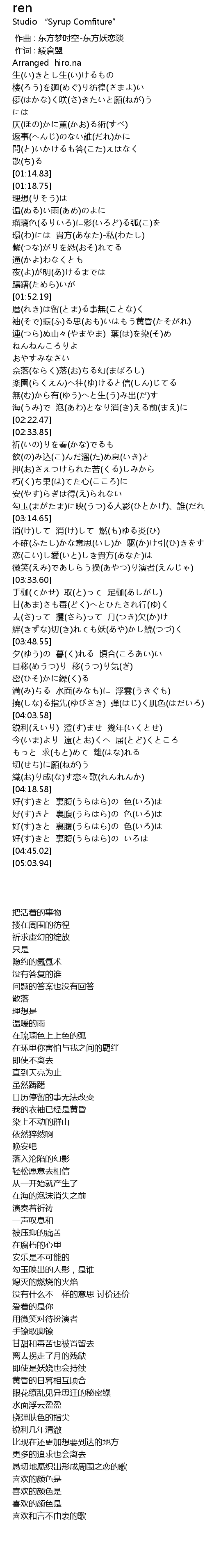 | [04:14.64] | 切(せち)に願(ねが)う 織(お)り成(な)す恋々歌(れんれんか) |