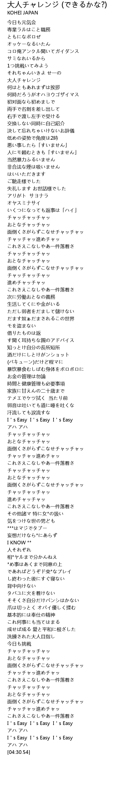 | [02:08.30] | I's Easy I's Easy I's Easy |