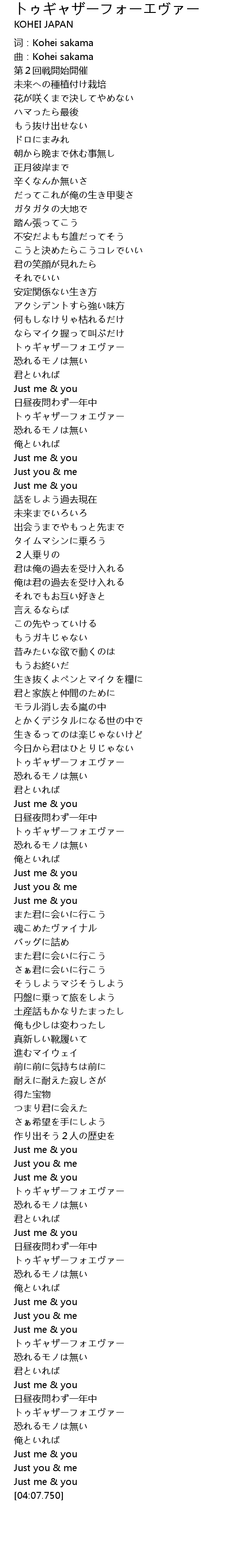 | [02:50.979] | トゥギャザーフォエヴァー |