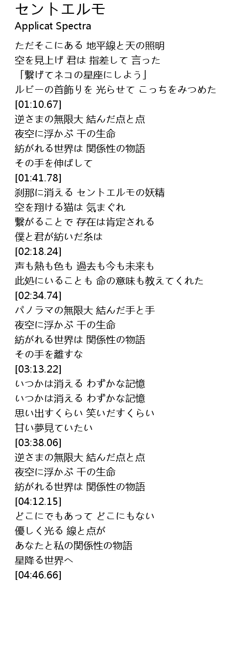 | [01:54.01] | 刹那に消える セントエルモの妖精 |