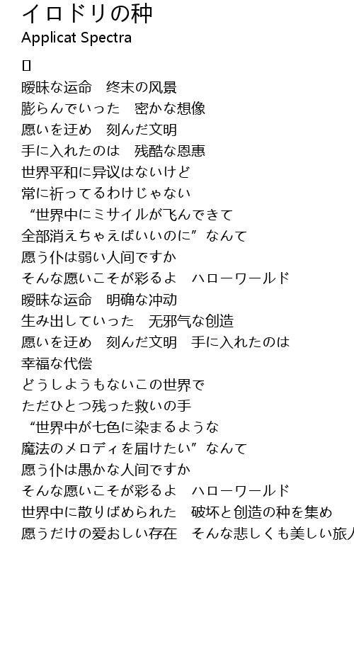 | Song | イロドリの种 |