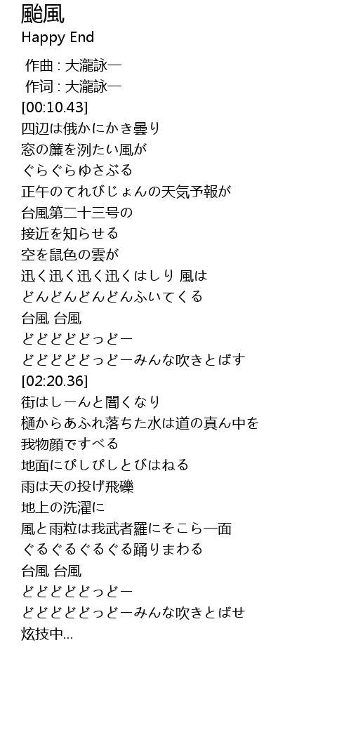 | [01:30.10] | 台風 台風 |