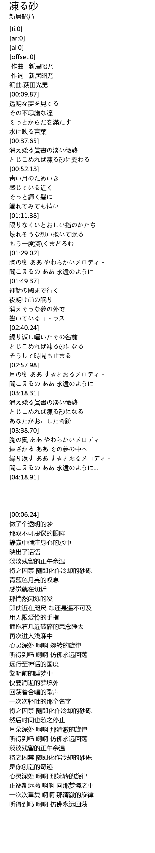 | [00:47.11] | とじこめれば凍る砂に變わる |
