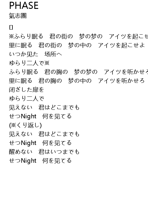 | ※ふらり眠る 君の街の 梦の梦の アイツを起こせよ | |