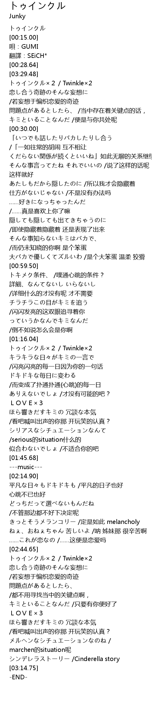 | [02:45.15] | トゥインクル×2 / Twinkle×2 |