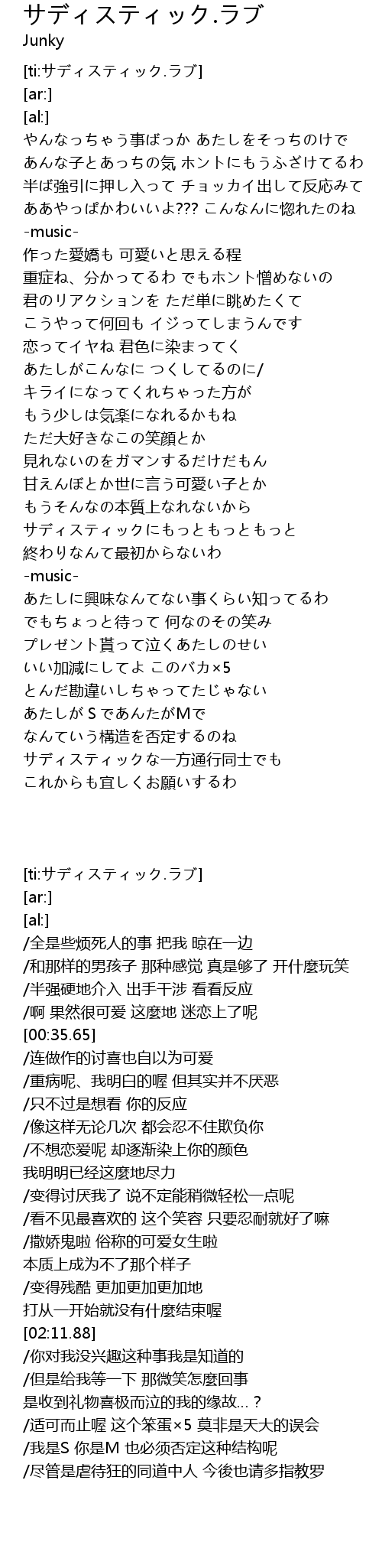 | [02:03.06] | サディスティックにもっともっともっと 終わりなんて最初からないわ |