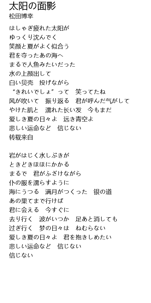 | 爱しき夏の日々よ 君を抱きしめたい | |