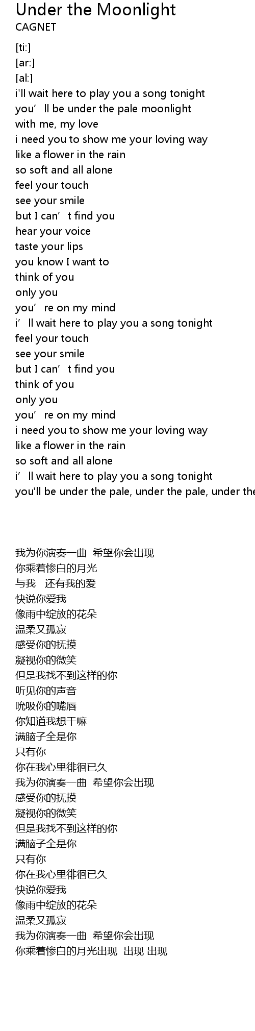 | [03:08.01] | you' ll be under the pale, under the pale, under the pale moonlight |