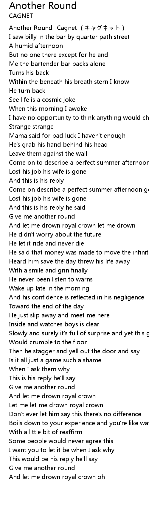 | [00:00.141] | Another Round Cagnet |